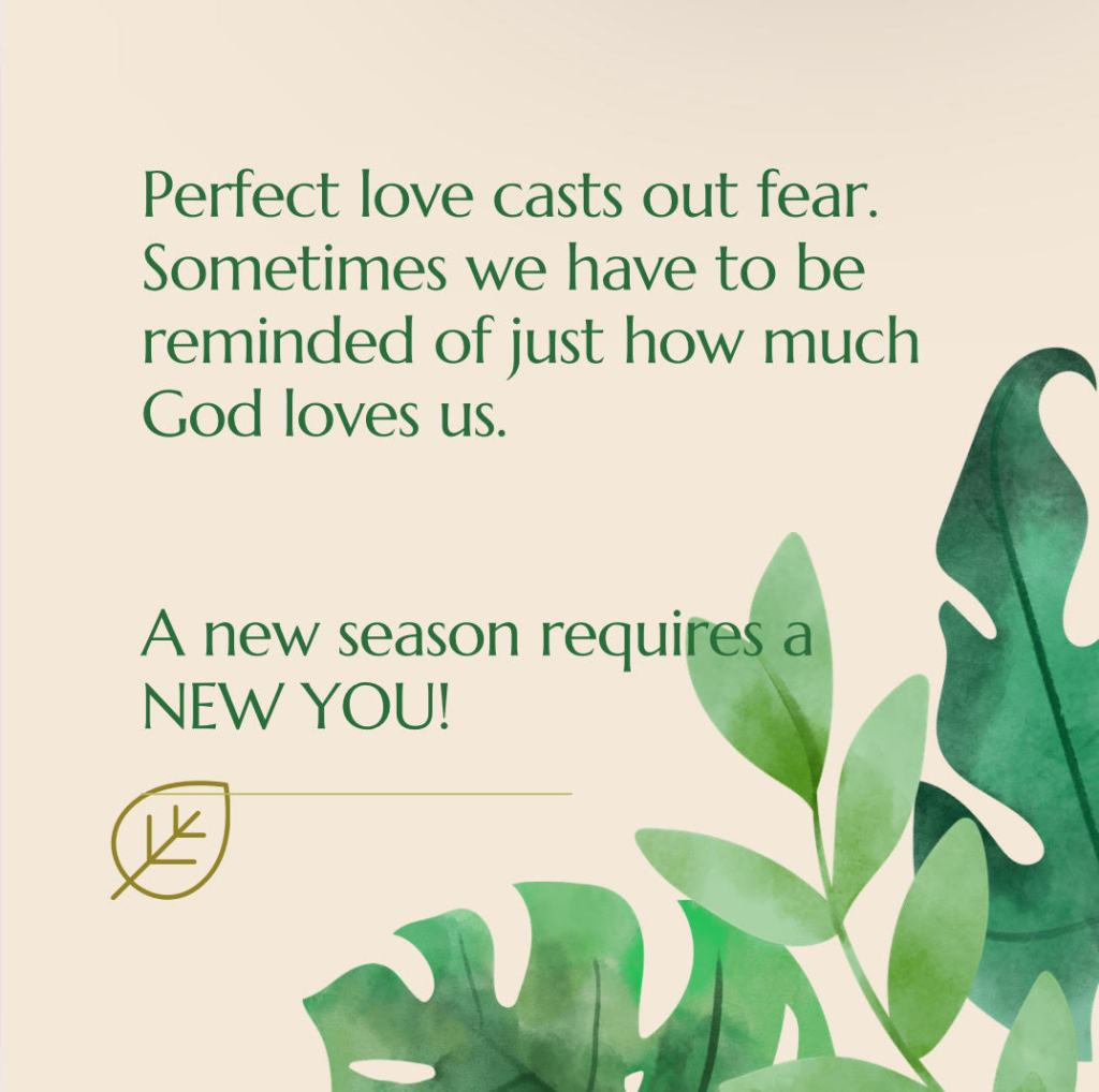 “Such love has no fear, because perfect love expels all fear. If we are afraid, it is for fear of punishment, and this shows that we have not fully experienced his perfect love.” 1 John 4:18 NLT